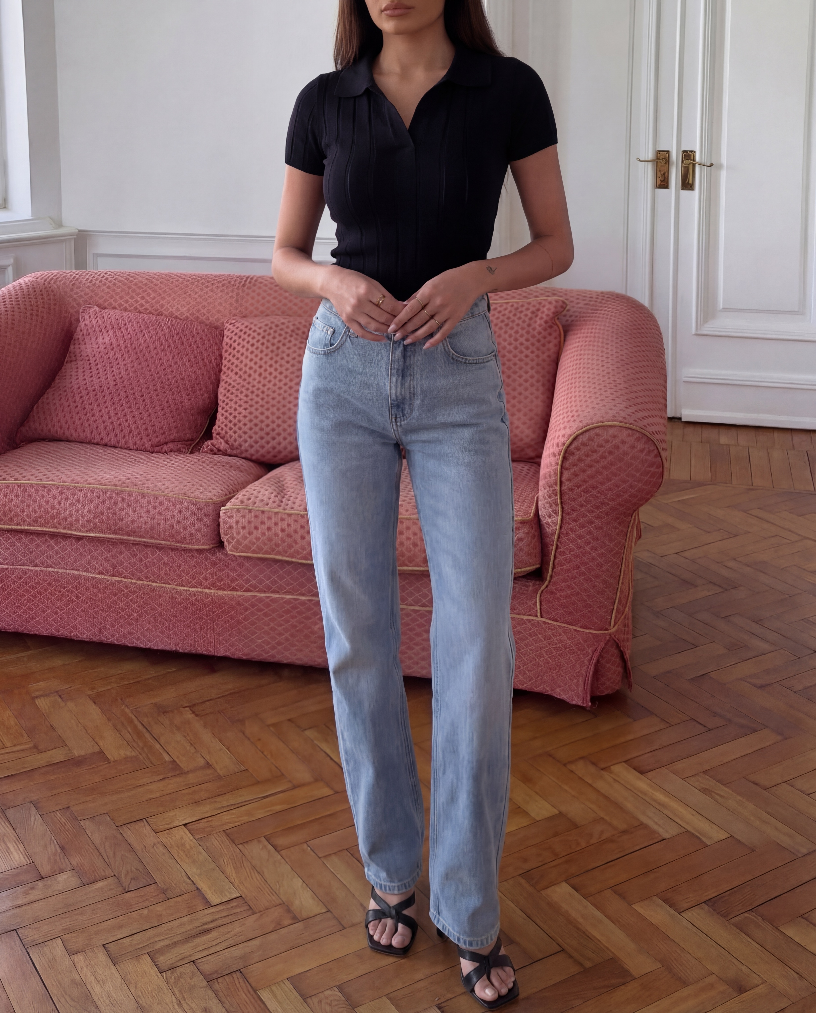 Вертикальные линии, нежность пряжи и эстетический код sport chic - все это новое боди-поло Line с отложным воротником в силуэте Slim fit, который деликатно подчеркивает линию талии и груди. Боди выполнено из высококачественной премиальной пряжи, которая отлично держит форму, не вытягивается и не пилингуется, но при этом очень эластична.