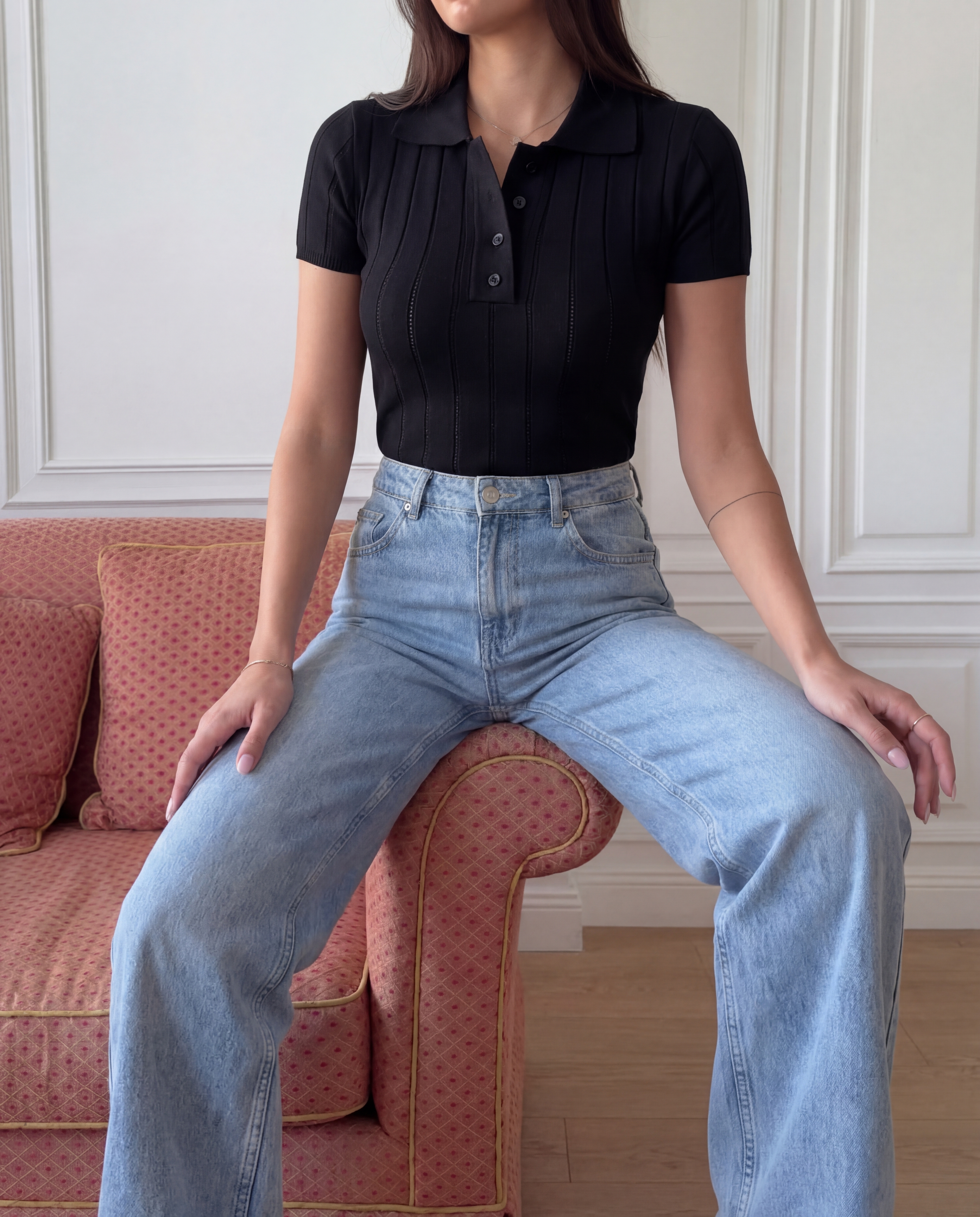 Несмотря на то, что поло облегает фигуру, оно совершенно не сковывает в движении. Сочетайте боди со свободным классическим костюмом, джинсами, лосинами, шортами.