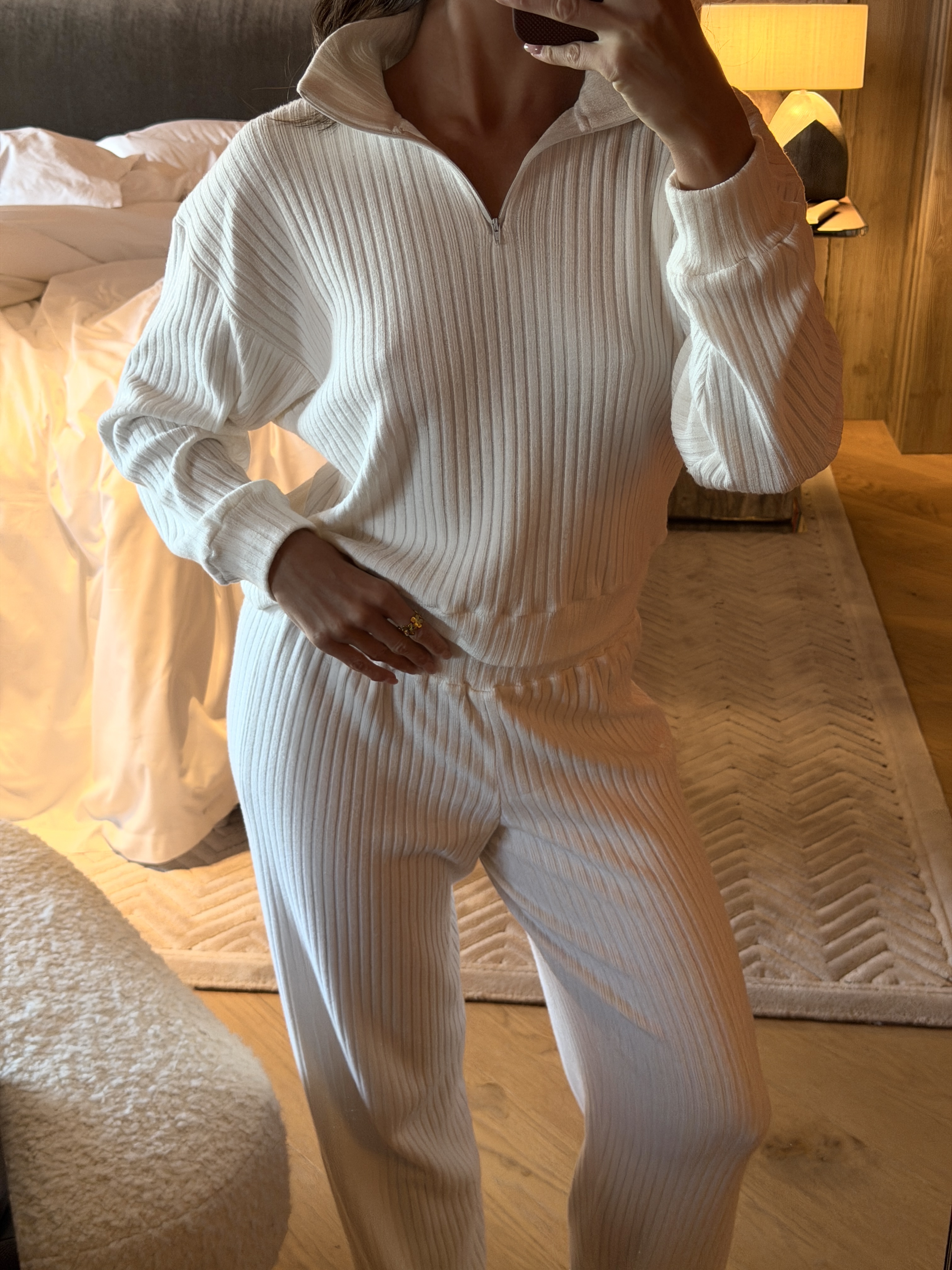 Долгожданный, теплый, безумно мягкий как снег в горах Куршевеля наш новый костюм Mona. В основе сета любовь к комфортной одежде и премиальная пряжа вискоза, очень мягкая, нежная, но при этом держит форму. Толстовка свободного силуэта с молнией на горловине и брюки прямого кроя свободно сидят, но при этом формируют красивый силуэт. Высокий воротник можно разложить по плечам и надеть на первый слой белую футболку. Костюм настолько мягкий, что вылезти невозможно. Он станет вашим любимчиком как для рабочих будней, так для прогулок и отдыха в выходные.