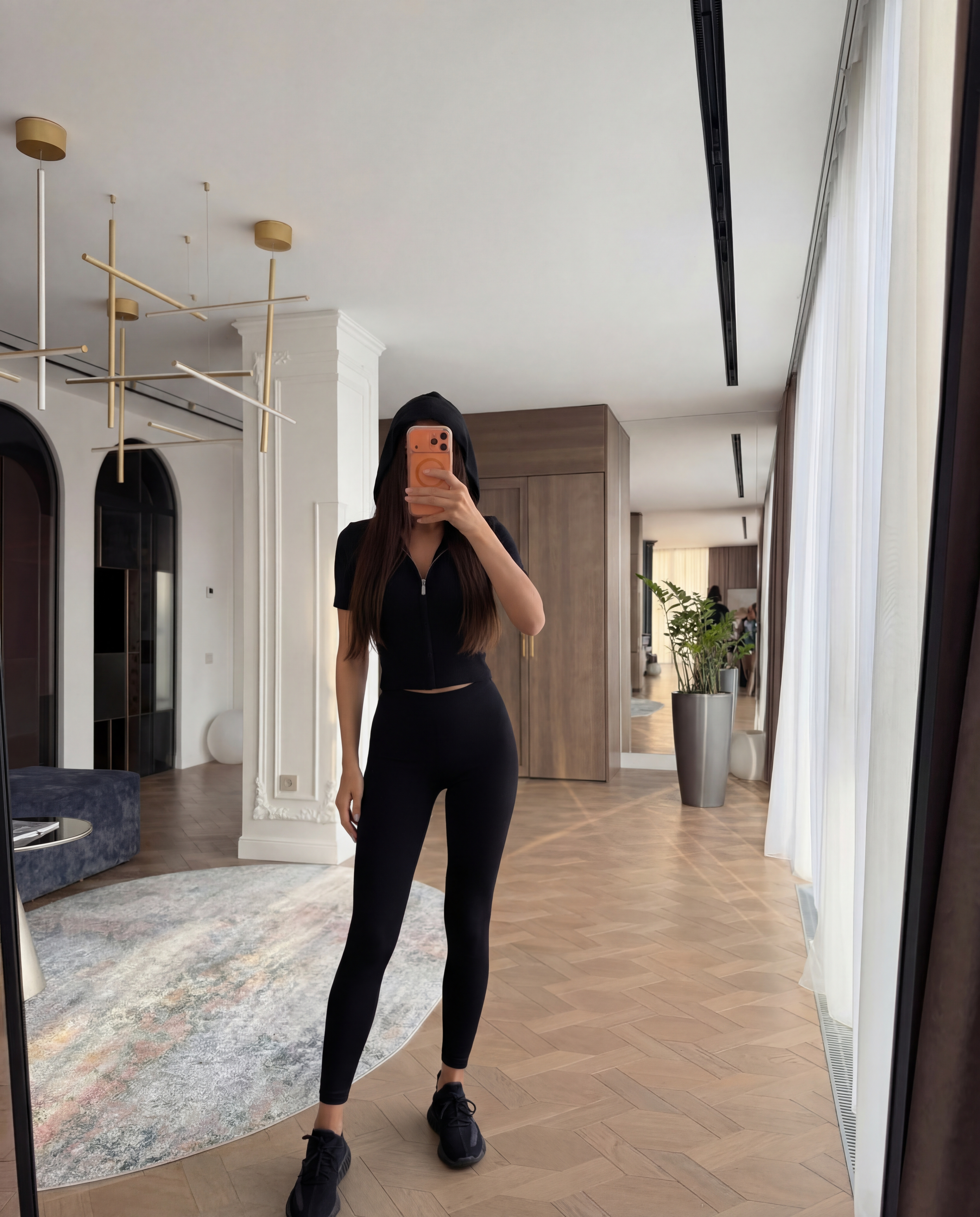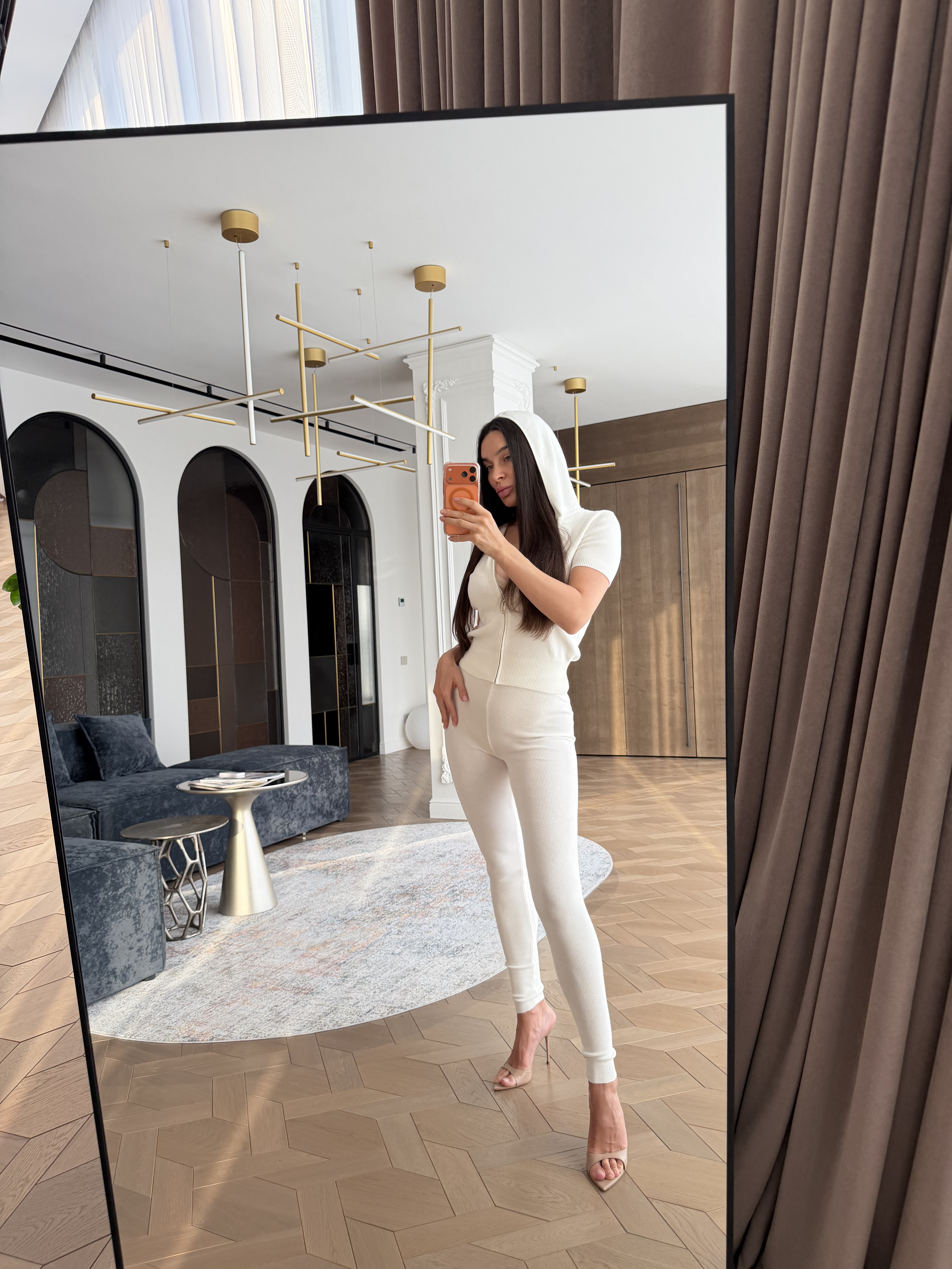 Костюм ZOE из премиальной пряжи - займет любимое место в вашем гардеробе. Универсальный комплект в зависимости от обуви и аксессуаров станет идеальной базой для повседневных, спортивных и вечерних образов - с кедами и свитшотом днем или с туфлями и пиджаком для вечернего выхода в свет. Костюм представлен в молочном и чёрном цветах.