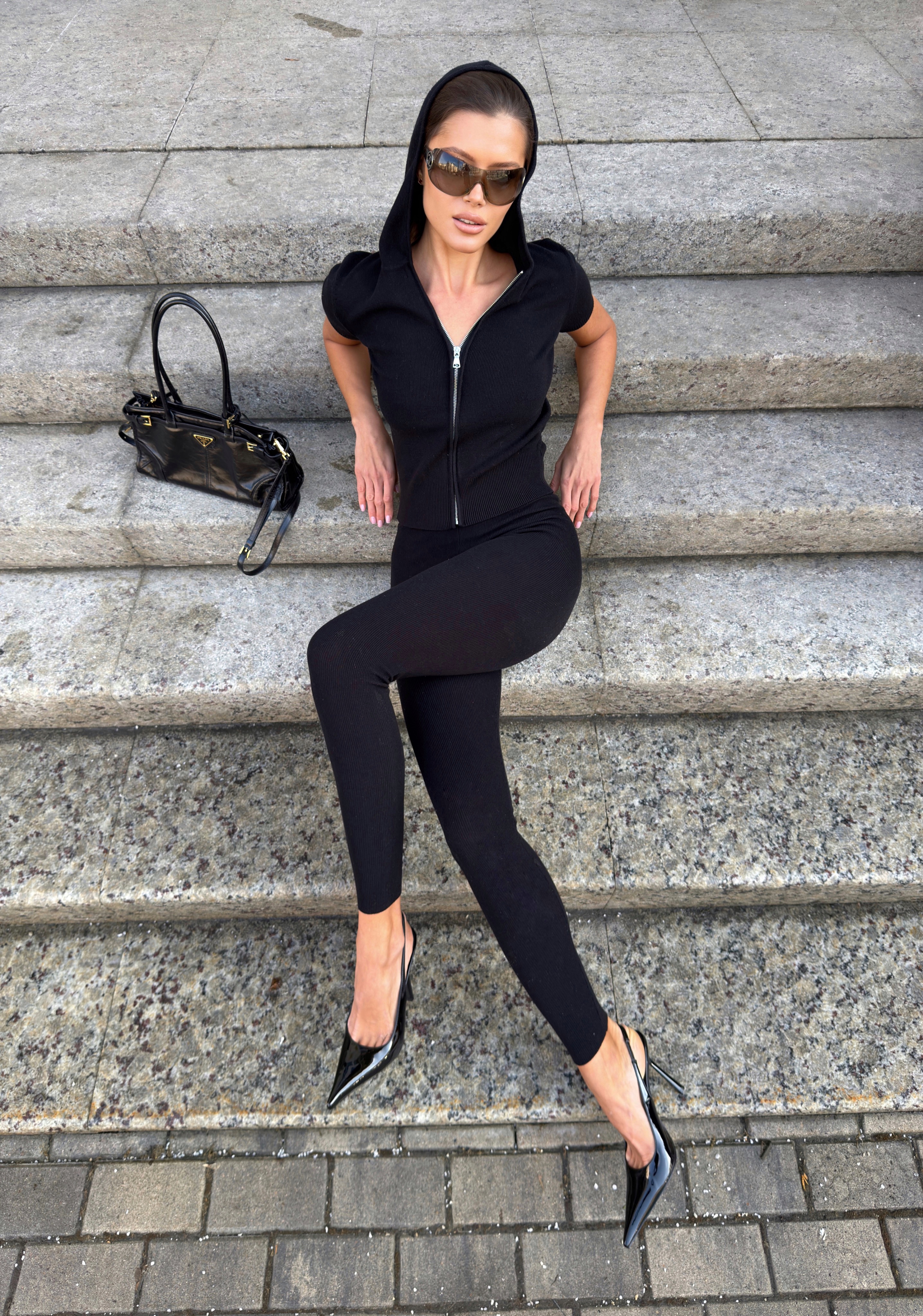 Костюм ZOE из премиальной пряжи - займет любимое место в вашем гардеробе. Универсальный комплект в зависимости от обуви и аксессуаров станет идеальной базой для повседневных, спортивных и вечерних образов - с кедами и свитшотом днем или с туфлями и пиджаком для вечернего выхода в свет. Костюм представлен в молочном и чёрном цветах.